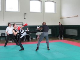 Rachel Shore, one of our Instructors, was hoping to take part in a Combat (full contact) bout, however her opponent pulled out at the last minute. Luckily though, Rachel managed to find another opponent with her weight division and went on to gain an easy win.